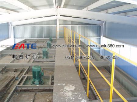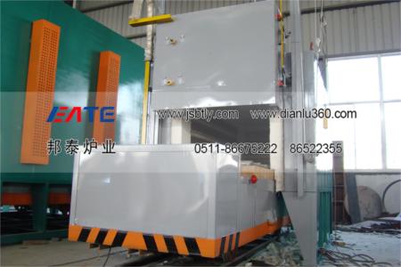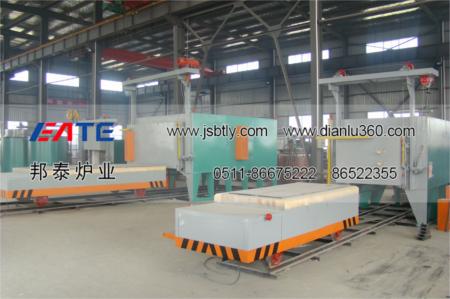 臺車爐主要用于鑄鋼件、汽車零部件、軋輥、鋼球、金屬結(jié)構(gòu)件、焊接件淬火、正火、退火、回火、時效以及各種機械零件熱處理之用。爐型可根據(jù)客戶需求量身設計定做。爐殼:是用角鋼、槽鋼及鋼板焊接而成的長方體外殼,殼體下邊有槽鋼焊接成支持爐體的支架。爐襯:采用全纖維結(jié)構(gòu),相對磚式爐膛節(jié)能40%左右,采用優(yōu)質(zhì)長纖維刺毯為原料,使用專用設備制成的模塊,并組成節(jié)能型爐膛,達到完好蓄熱效果,與其它產(chǎn)品相比優(yōu)點為低導熱,低熱容量,優(yōu)良的腐蝕性能,優(yōu)良的熱穩(wěn)定性及熱抗震性、升溫快等優(yōu)點。加熱元件采用高溫電阻合金絲繞制成帶狀和螺旋狀,分別吊掛在爐側(cè)、爐門、后墻及安放臺車擱絲磚上,并用高鋁瓷釘固定,安全簡潔。 電氣控制系統(tǒng):溫控采用智能微電腦程序控溫,另配記錄儀記錄完整工藝曲線,并可超溫報警;操作采用按扭加燈光顯示,實現(xiàn)對臺車進出、加熱元件通斷及爐門升降等動作的控制,并設有連鎖裝置,當爐門升高工或關閉至一定位置時臺車可進行動作,安全可靠。