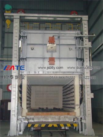 全纖維臺車爐由爐體(包括爐襯)、爐門、爐車、爐門起吊機(jī)構(gòu)、爐車行走機(jī)構(gòu)、加熱元件、溫控系統(tǒng)、溫度記錄等部分組成。